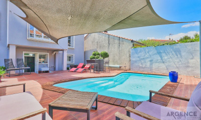 Le Plus : Matériaux et prestations de qualité. Chauffage par pompe à chaleur. Arrosage automatique avec forage. Garage, complété par trois places de stationnement. Terrain de pétanque et jacuzzi.