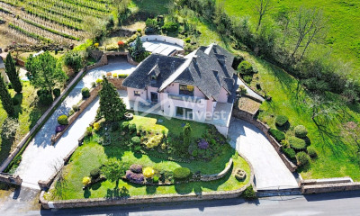 Très lumineuse, élevée sur 208 m² de hautes caves voutées (cave à vin exceptionnelle), 380 m² habitables environ, de plain-pied une vaste entrée (34 m²), un salon de 28 m², une salle à manger de 47 m² dotée de hauts plafonds à la Française et d'une belle cheminée en pierre, une cuisine équipée (20 m²) ouvrant sur 340 m² de terrasses extérieures, 2 chambres de 28 m² chacune avec sa salle d'eau attenante, une bibliothèque, un cellier.. à l'étage, sur 150 m², 4 chambres spacieuses (de 20 à 24 m²), 3 salles de bain, un billard, dressing et environ 150 m² de combles autrefois en partie habitables (chambre de bonnes). La ferme toute proche, à réhabiliter, propose une maison de la même époque 3 chambres (135 m² habitables), hangar (180 m²), grange sur étable (167 m² au sol), four à pain..