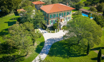 Dominant la vallée d'une province historique bordée par les reliefs pyrénéens, un château médiéval inscrit MH du 12e s., ses remparts et son domaine de 15 ha . Vue du ciel, la silhouette du château semble posée sur la cime d'un plateau boisé, telle une vigie attentive dans le vaste pliage des collines du Couserans. Autour, l'étendue s'ouvre sur un patchwork de prairies, de bois et de champs en pente douce, que vient ourler, au loin, la ligne dentelée des Pyrénées. Le regard, d'abord happé par le relief, est ensuite retenu par la forme presque ovale de l'enceinte, la masse sobre des toitures de tuiles anciennes et les pierres claires du corps principal : tout concourt à donner à l'ensemble une unité calme, dense, indiscutable. À l'approche du logis, en sortie de village, le monde contemporain s'efface. La route devient piste, puis sentier d'ombre. Flanqué de chênes et de hêtres, jalonné de bornes de pierre coiffées de sphères et reliées par une chaîne patinée, l'accès au domaine prend l'allure d'une allée d'apparat, rigoureusement tracée et discrètement solennelle. Ici, aucun portail tapageur, seulement le murmure du vent, la lumière filtrée par les feuillages, et cette sensation rare d'une lente montée vers un lieu habité par autre chose que le quotidien. Enfin, au sommet, entre les frondaisons, se dévoile la façade du château. Austère et pourtant accueillante, elle s'adosse à son rempart comme un dos à sa mémoire. Une porte en arc, prise dans l'épaisseur du mur d'enceinte, marque l'entrée. Derrière elle, la cour intérieure, partiellement enherbée, laisse entrevoir les différents visages du lieu : le puits creusé dans le roc, les ruines romantiques de dépendances à faire revivre, la tour carrée, les bâtiments accolés, les décrochements successifs d'une architecture qui s'est adaptée sans jamais trahir son origine. Construit au 12e s. et transformé au 17e s. en résidence d'été, inscrit depuis au titre des Monuments Historiques, le château a conservé sa cohérence structurelle et sa vocation résidentielle.