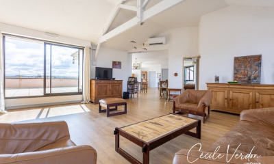 Situé au 4e et dernier étage de la résidence Cyrano, rue du 14 Juillet, cet appartement unique en son genre offre une surface de 191 m² prolongée par une incroyable terrasse de 100 m². Il bénéficie d'une vue panoramique totalement dégagée sur les coteaux, dans un environnement calme et privilégié.