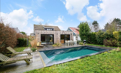 Marcq-en-Baroeul , exclusif et confidentiel . Dans un cadre de verdure exceptionnel et exposé plein sud , rare maison de l 'architecte ' Lapchin' ' entièrement rénovée récemment sur une fabuleuse parcelle de 2600 m2 agrémenté d'une belle piscine extérieure et d'un 'Pool House'.