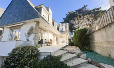 Votre Agence Bretagne-Sud Sotheby's international Realty la Baule vous présente: Dans l'un des environnements les plus prisés de la Baule les Pins, à quelques pas des plages et des commerces, se dévoile une propriété rare, empreinte d'élégance et de caractère, classée remarquable par un architecte de renom. Derrière sa façade pleine de charme, cette somptueuse villa de neuf pièces déploie des volumes remarquables, sublimés par une rénovation irréprochable et une décoration raffinée, mêlant authenticité et art de vivre contemporain. Chaque espace a été pensé avec exigence , offrant une atmosphère chaleureuse et sophistiquée. La pièce de vie, baignée de lumière , s'ouvre harmonieusement sur un jardin paysagé véritable écrin de verdure, et une sublime terrasse. Les matériaux nobles, les lignes élégantes et les perspectives parfaitement maîtrisées confèrent l'ensemble à une signature unique. La Villa propose cinq chambres, véritable havre de paix, permettant d'accueillir famille et invités dans un confort absolu. Les espaces de réception, tout comme les zones plus confidentiels, témoignent d'un équilibre rare entre convivialité et intimité. A l'extérieur, le jardin soigneusement arboré invite à la détente. Terrasse ,végétation luxuriante et espace bien-être avec spa composent un cadre de vie privilégié, à l'abri des regards. Une adresse confidentielle pour une clientèle en quête d'un bien d'exception, ou le luxe se conjugue avec discrétion et authenticité. Contact : Grégory Thouzé : Les informations sur les risques auxquels ce bien est exposé sont disponibles sur le site Géorisques : Bretagne Sud Sotheby's International Realty, votre agence immobilière de prestige à La Baule, 19, Bd Hennecart, spécialiste de la vente de propriétés, maisons et appartements sur la presqu'île Guérandaise, La Baule, Pornichet, Loire-Atlantique, Bretagne.