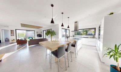 Implantée sur un terrain généreux de 5 887 m², la maison offre une surface habitable de 173 m² pensée dans les moindres détails. Ses volumes lumineux, ouverts grâce à de larges baies vitrées à galandage, créent une parfaite continuité entre intérieur et extérieur.