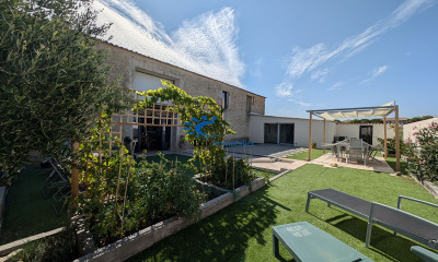 Belle Maison de plain-pied, haut de gamme, en rénovation totale avec agrandissement et aux dernières normes de construction RE 2020 pour 131 m2 habitables avec de beaux matériaux dans toute la maison, un excellent niveau de confort, d'isolation et 2 garages d'environ 20 m2 chacun dont 1 aménagé type 'Studio'.