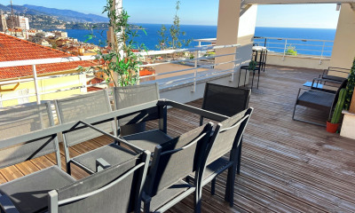À quelques mètres seulement de la Principauté, dans un calme suspendu au-dessus de la ville, voici un penthouse comme il n'en existe pratiquement plus.Un appartement-villa posé entre le bleu du ciel, le bleu de la Méditerranée et les lumières de Monte-Carlo.