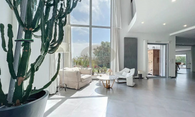 Située au calme à 10 minutes de la plage entre Cannes et Nice Côte d'Azur, cette majestueuse villa d'architecte de 350m² résolument contemporaine, vous propose un immense salon séjour cuisine, arrière-cuisine, 5 chambres, 2 salles de bains, 2 toilettes, 1 bureau, un double-garage, une terrasse, une piscine, le tout sur 3000m² de terrain clos et arboré.