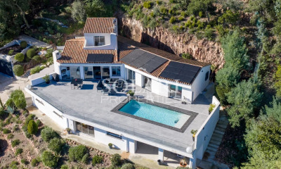 VILLA DE PRESTIGE MINELLE - PISCINE - PlEIN SUD - CALME ABSOLU En vente : découvrez à MANDELIEU LA NAPOULE (06210) cette époustouflante propriété 10 pièces de 550 m² et de 1912 m² de terrain. Cette villa, sans vis-à-vis avec un bel aperçu Mer, est exposée plein sud. Elle est disposée comme suit : un immense salon séjour, une cuisine semi-ouverte, américaine, aménagée et équipée, quatre chambres en suite, cinq salles de bains et cinq toilettes. Vous retrouverez également un grand espace de jeux avec bar, espace billard, cave à vin haut de gamme, chambres supplémentaires. le tout avec des prestations haut de gamme telles que : marbre au sol, cuisine en granit faite sur mesure, mobilier de grandes qualités.. Un chauffage à air pulsé est installé dans toute la maison, ainsi qu'une climatisation réversible. En annexe une belle piscine, un jacuzzi, des espaces en terrasse, un grand pool house, un bassin avec des Carpes KoÏ, un terrain de pétanque et un jardin, sont également présents pour un confort exceptionnel. Ce havre de paix conçu par un architecte de renom, est en excellent état général et ne nécessite aucun travaux. Côté stationnements, elle dispose de six places de parking et un grand garage de 50 m2 attenant. L'accès est sécurisé par la présence d'un digicode , d'un interphone et d'une alarme. Le tout à 15 min à pied des commerces. L'École Primaire les Minelles, le Collège Albert Camus et l'École Maternelle Cottage Bleuets se trouvent à moins de 10 minutes à pied. Niveau transports, il y a huit gares à moins de 10 minutes en voiture. L'autoroute A8 est accessible à 2 km. Pour vos loisirs, vous pourrez compter sur une bibliothèque à quelques minutes à peine. On trouve aussi des restaurants, des commerces, trois boulangeries, une boucherie charcuterie, une épicerie et une poissonnerie. Cette maison est proposée à l'achat pour 3 200 000 €.