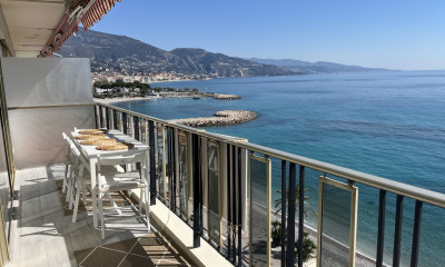L'appartement se compose d'une belle entrée avec dressing, un beau et lumineux salon/salle à manger avec balcons vue mer panoramique, une cuisine indépendante, deux chambres très lumineuses, une salle de douche et une salle de bain.