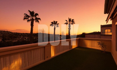L'espace de réception se compose d'un vaste séjour, d'une salle à manger élégante et d'une cuisine entièrement équipée, le tout s'ouvrant harmonieusement sur de larges terrasses pensées aussi bien pour la détente que pour la réception. L'espace nuit accueille une suite principale, dotée de sa salle de bains privative et de deux dressings, ainsi que trois chambres supplémentaires, chacune bénéficiant de sa propre salle de bains en suite. Un toilette invités et une salle de douche indépendante complètent ce niveau avec raffinement.