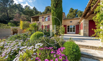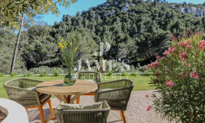 Sans être isolée, cette maison bénéficie d'un environnement exceptionnel : une vue dégagée sur la nature, les Alpilles, la roche et les arbres? un véritable havre de paix.