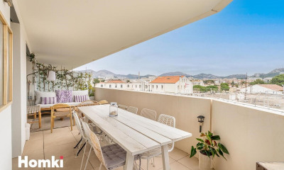 Au 7 € et dernier étage d'un immeuble du 8 € arrondissement, cet appartement de 106 m² offre une vue panoramique exceptionnelle sur la mer, les collines, Notre-Dame de la Garde et l'ensemble de Marseille.