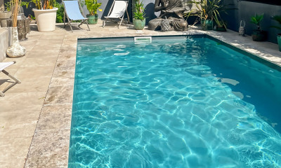 Dans la continuité, le coin relaxation comprend un Pool House de 19m², une piscine de 7mx3,5m, un barbecue et une douche chauffée.