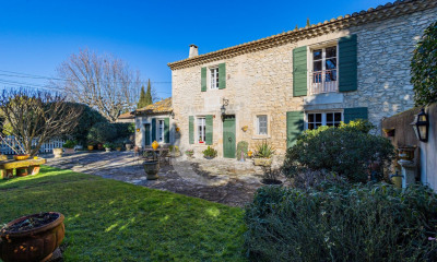 En campagne de L'Isle-sur-la-Sorgue, au coeur d'un environnement naturel préservé et au calme, ce mas du XIXe siècle en pierre apparente, entièrement rénové, séduit par la qualité de ses prestations, l'élégance de son cadre et la rareté de ses installations équestres.