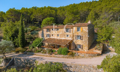 A quelques minutes du village de Bargemon (Var), élégant mas provençal de 1850 Au coeur de 4,4 hectares de terrain paysager et boisé, dominant une superbe vue panoramique sur la vallée, rare propriété contituée de restanques de pierres sèches, vieux oliviers et plantes méditerranéennes, comprenant un mas en pierre, élevé sur 3 niveaux (191 M2).