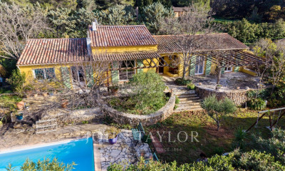 Exclusivité PRESTIGE Signature : Sur les hauteurs du village médiéval du Castellet, classé parmi les 'Plus Beaux Villages de France', cette demeure provençale rénovée en 2023 conjugue charme, authenticité et prestations haut de gamme. À deux pas du village (8mn à pieds). Nichée dans un écrin de verdure de plus de 5 100 m² entièrement clos, elle offre une vue dégagée exceptionnelle et un calme absolu, tout en restant proche de toutes commodités : écoles à 10 minutes, autoroute à 7 minutes, plages de Bandol et Saint-Cyr à 15 minutes. Développant 423 m² de plancher dont 293 m² habitables (loi Carrez), la propriété se distingue par sa modularité rare : elle peut accueillir une grande famille ou se prêter à une activité de gîtes/chambres d'hôtes grâce à ses trois logements indépendants communicants. La partie principale, baignée de lumière, propose un vaste séjour cathédrale avec cheminée, une mezzanine, une cuisine contemporaine entièrement équipée ouvrant sur une terrasse plein sud de 70 m² avec cuisine extérieure et vue panoramique. L'espace nuit se compose de trois chambres, une salle de bain, une salle d'eau, buanderie et nombreux rangements. En rez-de-jardin, deux logements distincts — un T3 de 104 m² et un studio de 28 m² — bénéficient chacun d'une entrée indépendante, d'un aménagement soigné et d'un excellent rendement locatif (jusqu'à 4 800 €/mois nets). À l'extérieur : piscine neuve au sel 8x4,5 m avec plage immergée, jardin paysager, bastidon en pierre cadastré, garage 56 m² et vaste espace de stationnement (jusqu'à 15 véhicules), deux portails automatisés en fer forgé. Un bien d'exception, rare à la vente, où se mêlent harmonieusement le charme provençal et le confort contemporain, dans l'un des secteurs les plus recherchés du Var.