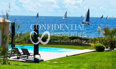 À l'extérieur, un cadre idyllique face à la Méditerranée : piscine avec pool house, terrasses baignées de soleil grâce à leur exposition Sud, et un grand garage idéal pour les collectionneurs de voitures.
