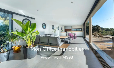 Le Beausset, nichée au fond d'une impasse confidentielle à proximité immédiate du coeur du village, cette villa entièrement de plain-pied séduit par ses lignes épurées, ses volumes généreux et son environnement privilégié, sans aucune nuisance.