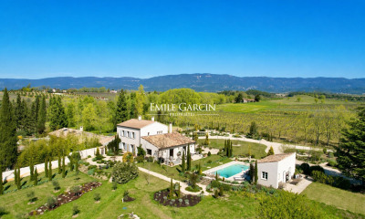 L'ensemble s'ouvre sur une vue panoramique saisissante sur le Luberon, offrant un tableau vivant au fil des saisons.