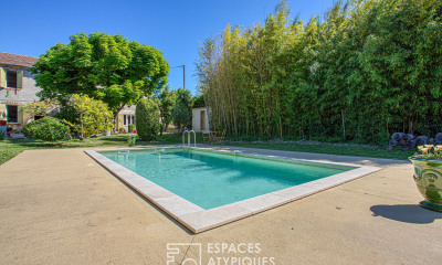 The 30 m² gîte, nestled in the heart of a small forest, adds an intimate and bucolic touch to this property.