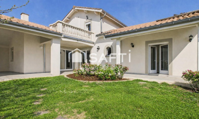 Implantée sur un terrain arboré de 1 150m², la propriété profite de plusieurs terrasses ensoleillées, d'une piscine chauffée et couverte, et d'un très grand garage.