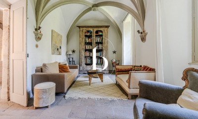 - Un grand salon avec un plafond aux poutres apparentes et sa bibliothèque attenante ainsi que deux autres salons d’apparat.