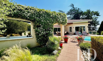 Magnifique bâtisse construite par les compagnons du devoir en 1970, une vue imprenable sur le village, terrains attenants d'un peu plus d'un hectare arborés, plantés en oliviers en production, dotés d'une piscine et son kiosque en bambous.