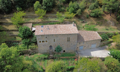 Ancienne filature de soie située au bord de la rivière Auzène avec PISCINE (5X14) sur un domaine de plusieurs hectares dans le ''Parc Naturel Régional des Monts d'Ardèche''.