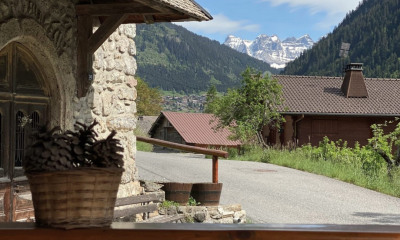 Occupant l'intégralité du dernier étage de la résidence, l'appartement profite d'une position dominante offrant une vue panoramique spectaculaire sur la vallée de Morzine, les pistes de ski et les reliefs environnants.