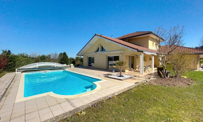 À l'extérieur, la propriété est sublimée par plusieurs aménagements : une terrasse plein sud, une cuisine d'été type pool-house, une piscine chauffée par pompe à chaleur, ainsi que de nombreuses possibilités de stationnement.