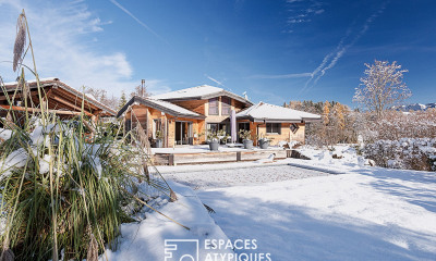 Between lake and mountains, close to Lake Geneva and the Portes du Soleil ski resorts (Abondance, Châtel, Morzine, Avoriaz, etc.), this chalet enjoys a privileged location on the edge of a forest, in the heart of a wooded plot of 1,571 m². The property is spread over three levels.