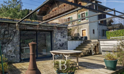 A vendre, dans un secteur calme et proche du cœur de Mieussy, grande maison familiale de construction traditionnelle, composée de deux appartements T4 indépendants, édifiée sur un terrain en pente douce de 1 525 m².