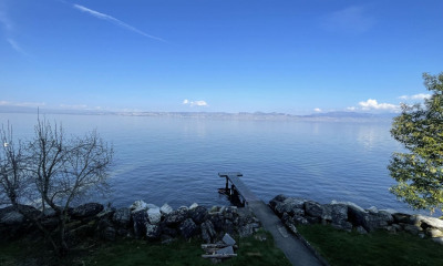 Une large terrasse d'environ 68 m² prolonge agréablement l'appartement. Elle offre une vue dégagée sur le parc et une présence du lac Léman, dans un environnement calme et verdoyant.