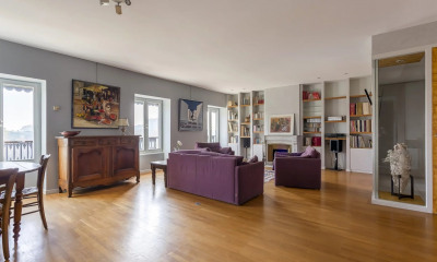 Perché au 9 € et dernier étage d'une copropriété de standing des années 60, récemment ravalée, cet appartement d'exception situé sur le cours Aristide Briand à Caluire, offre un panorama spectaculaire sur Lyon.