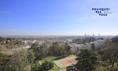 Perché au 9 € et dernier étage d'une copropriété de standing des années 60, récemment ravalée, cet appartement d'exception situé sur le cours Aristide Briand à Caluire, offre un panorama spectaculaire sur Lyon.