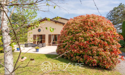 Nichée au calme d'un secteur résidentiel prisé de Dommartin, cette maison individuelle de 338 m², posée sur une belle parcelle arborée de 2 582 m², offre un cadre de vie spacieux et chaleureux, idéal pour une grande famille en quête de sérénité et de confort.