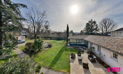 Vous serez charmés par les extérieurs : un jardin soigneusement aménagé et arboré (figuier, olivier, mûrier…) agrémenté d'un bassin à poissons, une terrasse équipée d'un store banne le tout à l'ombre d'un chêne.