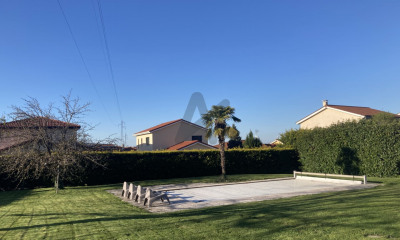 Côté nord, une parcelle d'environ 616 m² a été entièrement aménagée pour faciliter l'accès à la propriété et le stationnement. Un garage, un auvent et une aire dédiée permettent d'accueillir de nombreux véhicules en toute sécurité, avec un portail automatique pour plus de confort.