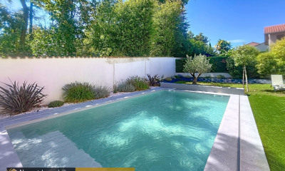 Une piscine sécurisée, une grande terrasse couverte pour prolonger les soirées d'été, un terrain de pétanque, un abri de jardin, et un stationnement aisé pour trois véhicules. Un véritable cocon, à l'abri des regards, en plein centre du village.
