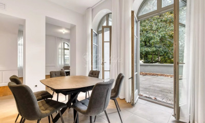 Le charme de l'ancien est omniprésent : parquets massifs en point de Hongrie, moulures, cheminée, hauteurs sous plafond (3.30 m), conférant à l'ensemble une atmosphère authentique et élégante.