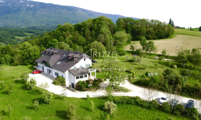 Cette maison de caractère de 672 m² située à Traize à proximité de Yenne, nichée en pleine nature, offre une vue imprenable et un cadre naturel exceptionnel, sans vis-à-vis. Construite en 2016 avec des matériaux de qualité, elle repose sur un terrain d'environ 8000 m².