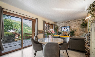 Baignée de lumière, la maison se déploie sur quatre niveaux et invite naturellement aux retrouvailles et aux moments partagés. L'hiver, la cheminée devient le cœur battant des soirées feutrées. L'été, la terrasse plein Sud offre un face-à-face saisissant avec les sommets, pour des instants suspendus hors du temps.