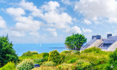 La cheminée sculpturale habille divinement ce salon/salle à manger tourné sur son enveloppe verdoyante, visible de ses lucarnes latérales, de sa meurtrière joliment pensée ou encore sa magnifique baie vitrée qui offre au regard une aquarelle permanente évoluant au fil des saisons.