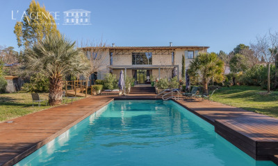 Nichée dans un écrin de verdure de plus de 2 hectares, cette villa unique allie architecture solaire passive, confort et nature préservée. Avec environ 200 m² habitables, un appartement indépendant, et une piscine à débordement chauffée, elle offre un art de vivre rare à seulement quelques minutes du village. Avec son exposition sud-est la maison profite d'une luminosité toute l'année.