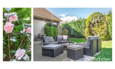 Built on a 1,015 m² plot, the property features a beautifully landscaped and tree-filled garden, enhanced by a magnificent heated swimming pool.