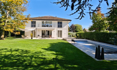 L'Atrium incarne une vision contemporaine d'une maison exceptionnelle : un lieu où l'architecture s'estompe pour laisser place au mouvement et à la clarté. Cette propriété unique se distingue par ses volumes majestueux, sa hauteur exceptionnelle du plafond et ses galeries de circulation particulièrement larges. Ce design offre une impression immédiate d'espace, idéale pour une vie familiale dynamique. La connexion entre les différents niveaux est assurée par un escalier suspendu dont les marches flottantes, sans montées, permettent de traverser la maison d'un bout à l'autre de la vue et de la lumière. Le rez-de-chaussée a été conçu comme un espace de vie partagé, à la fois pratique et élégant. Depuis l'entrée, un vestiaire séparé permet l'organisation quotidienne de toute la famille discrètement. Le vaste salon avec cheminée et la salle à manger sont rehaussés par un parquet aux larges et profondes planches, créant une atmosphère chaleureuse et authentique. La cuisine, véritable centre nerveux, communique fluidement avec les zones d'accueil, tandis qu'un bureau raffiné et une suite d'invités assurent un confort parfait pour le travail ou l'accueil de ses proches. À l'étage, le concept de l'Atrium prend toute sa dimension. La verticalité est célébrée ici par une hauteur spectaculaire du plafond, couronnée au sommet du toit par une structure en verre. Ce pavillon lumineux inonde tout l'atrium central d'une clarté zénithale, créant une connexion constante avec le ciel. La suite parentale se distingue comme un sanctuaire de bien-être, avec une cabine d'essayage sur mesure et une salle de bain avec hammam privé. Trois chambres supplémentaires spacieuses — dont une avec sa propre salle de bain attenante — complètent ce niveau baigné de soleil, ainsi qu'une terrasse couverte donnant sur le jardin. L'étage -1 est dédié à la détente active et à la polyvalence. Une grande salle multifonction accueille à la fois un home cinéma et un espace de fitness, offrant un terrain de jeu idéal pour les loisirs en famille. Ce niveau comprend également un studio autonome avec son entrée privée, une cuisine et une salle de bain, parfait pour accueillir des amis de façon autonome ou loger le personnel. Une cave à vin, un atelier et des salles techniques assurent la logistique parfaite de la maison. Les extérieurs sont une extension naturelle de cette architecture fluide. Située sur un terrain de 1 300 m² protégé par des arbres matures, la propriété s'ouvre sur une vaste terrasse ensoleillée comprenant un espace barbecue et une piscine aux reflets changeants. À proximité de la cuisine, une terrasse permet la restauration en plein air, tandis qu'un potager paysager invite toute la famille à savourer des produits frais chaque jour. Sécurisé par un portail électrique, l'ensemble comprend un double abri d'auto, un espace de stockage pour vélos et un abri de jardin, répondant parfaitement aux besoins d'une vie active et paisible à Coppet. Coppet est une commune très recherchée sur la Côte Vaud Azur, à seulement 15 minutes de Genève et de son aéroport international. Bien desservie par le train et l'autoroute, elle offre à la fois la tranquillité d'un village historique sur les rives du lac Léman et une proximité immédiate de toutes les commodités. Transports et équipements L'arrêt de bus le plus proche se trouve à quelques minutes à pied, permettant aux enfants et aux adolescents de se déplacer de manière autonome....